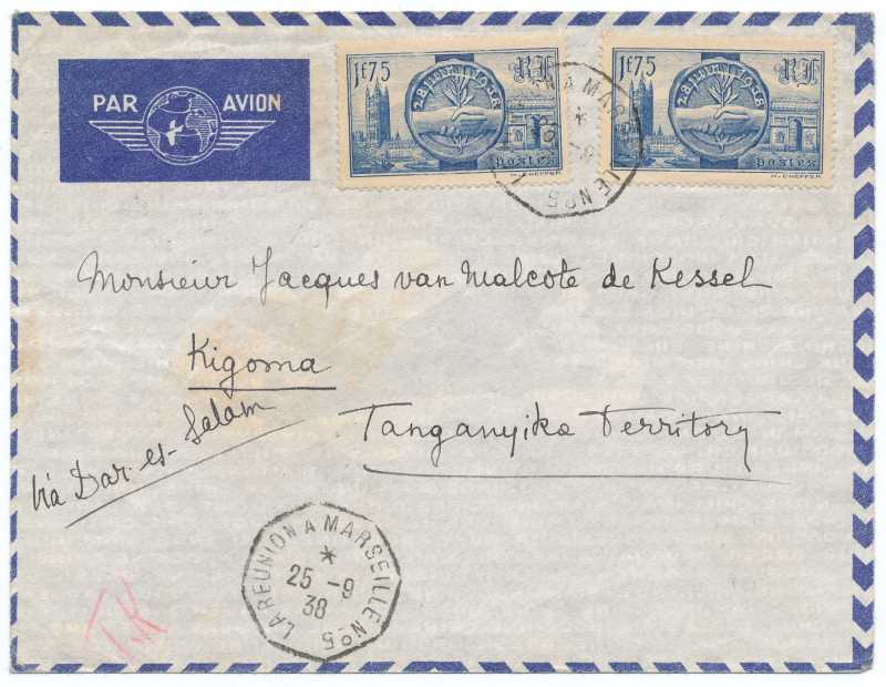 1938 Flown cover from Port Said to Tanganyika