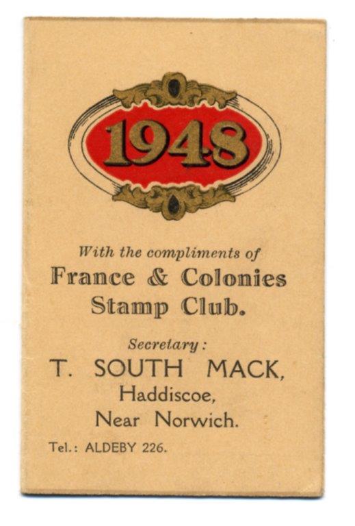 I have been a member since the mid 60s but cannot recall the name. What is peculiar is the name attributed to the Society. It was known as the France & Colonies Stamp club for a very short time (1948-49) but later in 1949, on the occasion of the centenary of the first French stamp, it was renamed the France & Colonies Philatelic Society. I do not understand why the old name was still being used in 1953.